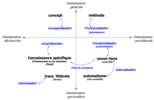 Conceptualisation | Élaboration d’un concept, connaissance stable d’un aspect du monde. Processus inductif fondé sur le repérage de traits communs, la catégorisation, et la mise en relation avec d’autres concepts. |