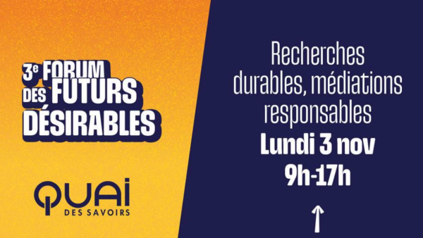 Pour la 3ème édition, qui se déroulera le 3 novembre 2025 au Quai des Savoirs à Toulouse, le Forum des futurs désirables ouvre les échanges sur le thème : “Recherches durables, médiations responsables”