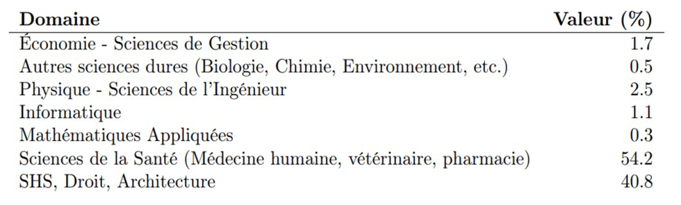 Table 1. Répartition des documents en fonction des principaux champs disciplinaires de DUMAS au 23 décembre 2023. N = 52 783