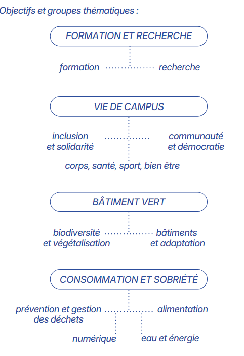 Ont été sollicité·e·s le personnel du CROUS, responsable des achats et marchés publics, responsables des bâtiments et de la consommation d’énergie, responsables des formations et de la recherche.