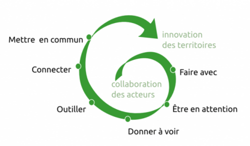 On n’a qu’une journée sur la la coopération, alors que dans animacoop ou cooptic les formations durent quinze semaines... on fait un atterrissage avec les personnes sur, d’après vous, quelles sont les ingrédients, les fondamentaux de la coopération, et plutôt sous la forme d’un espace de discussion apprenante. Cela part un peu dans tous les sens, mais en général, les gens ont plein d’idées. Après on restructure ça selon de deux entrées : une entrée autour d’une notion qui s’appelle la **gouvernance contributive**, dans lequel un certain nombre d’étapes ont été formalisées par un ancien élu brestois, et avec comme autre entrée tout un processus de formation autour de la coopération sur moi : ma posture, ma posture au groupe, ma posture aux autres, au nous, quels sont les éléments pour faire du nous ? comment, une fois qu’on a fait du du nous, on s’articule avec l’extérieur. c’est le matin du troisième jour.