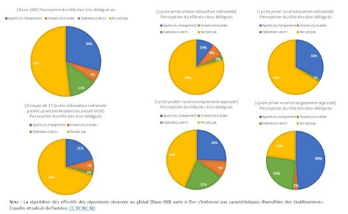 Des 380 répondants au questionnaire administré auprès de lycéens de Bretagne, 85 % indiquent la présence d’éco-délégués dans leur établissement, même au sein d’un lycée n’ayant pas encore mis en place le dispositif. Moins de 5 % déclarent être eux-mêmes éco-délégué au moment de l’enquête.
