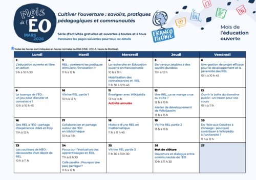 Dans le prolongement de ces réflexions, nous invitons la communauté à se réunir le 26 mars, à l’occasion du temps de clôture du Mois de l’éducation ouverte.