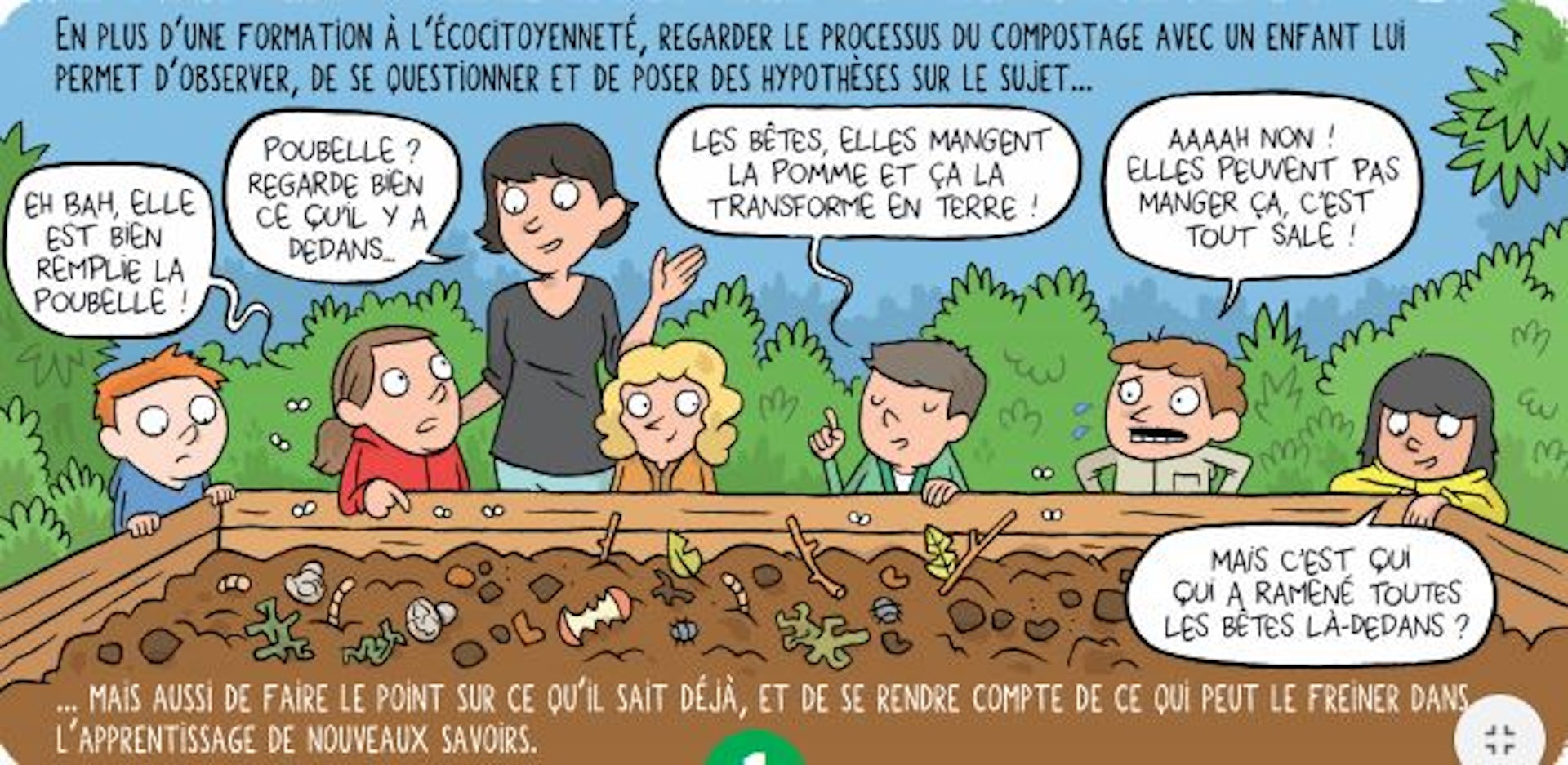 Ma thèse (titre original : « Conceptions initiales d’enfants de cinq ans sur la décomposition de la matière organique. Influence des pratiques de compostage domestique sur la compréhension des mécanismes scientifiques en jeu ») porte sur les pratiques de compostage en œuvre dans les familles, et ce que les enfants de cinq ans en comprennent.